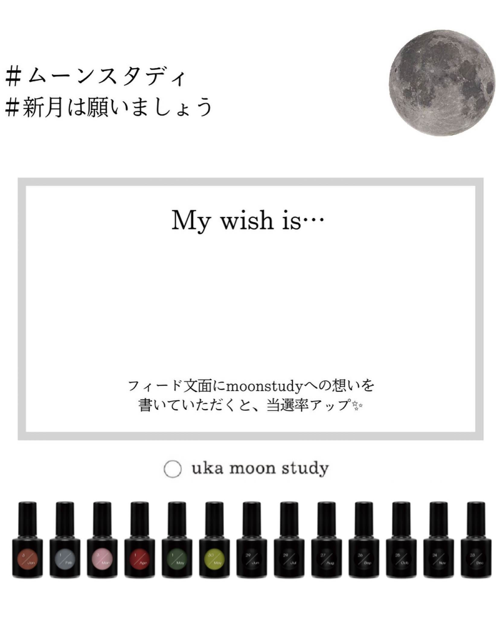 3. 2の投稿には@ukacojpのアカウントをタグ付けのうえ、ハッシュタグ「#ムーンスタディ塗ってみよウカ」、「#uka」、「#ムーンスタディ」を付けてご投稿ください