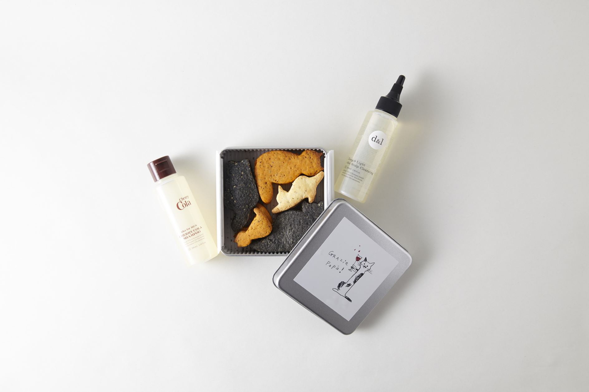 父の日限定三毛猫クッキーと頭皮のキメを整え、ハリやうるおいを与えるスカルプトニックをセットに。