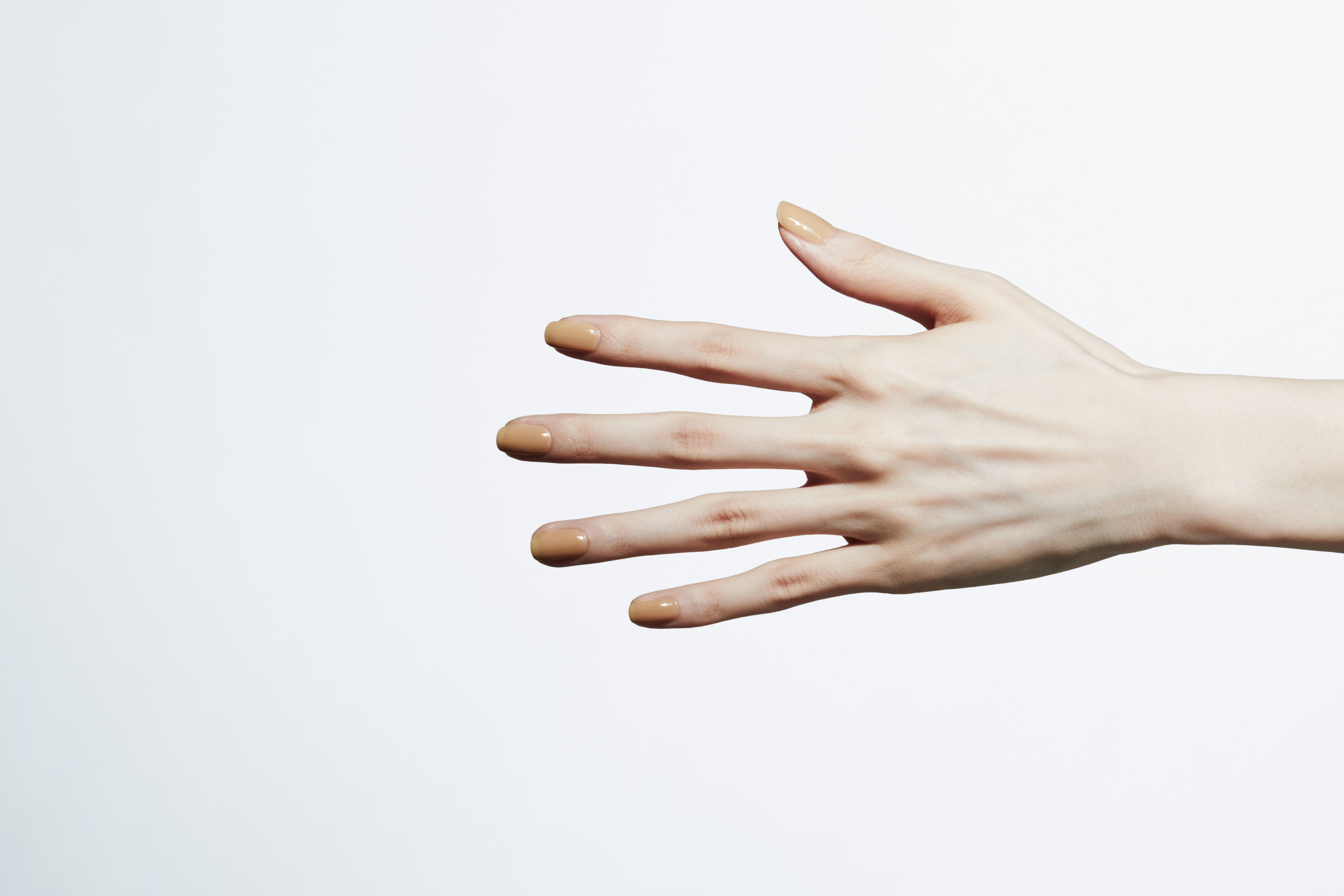 ヘーゼルベージュ/ナチュラルなカラーの中にも控えめなグレーでモードをプラス。手元に抜け感を感じさせる黄味ベージュ。