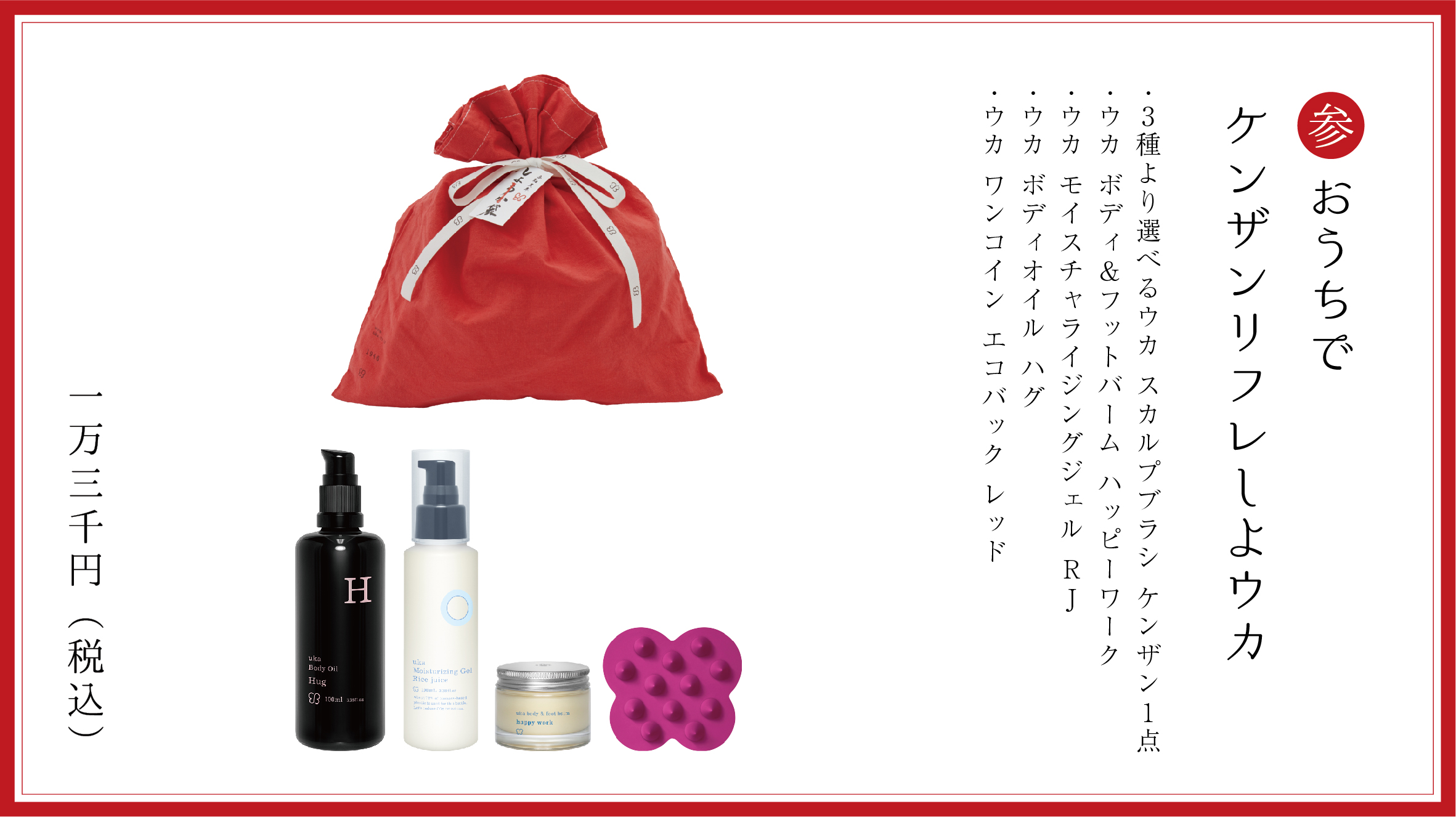 フェイス&ボディをケアできるアイテムとケンザンがセットに。ご自宅でセルフマッサージが楽しめます。スカルプブラシ ケンザンはお好きな硬さが選べます。