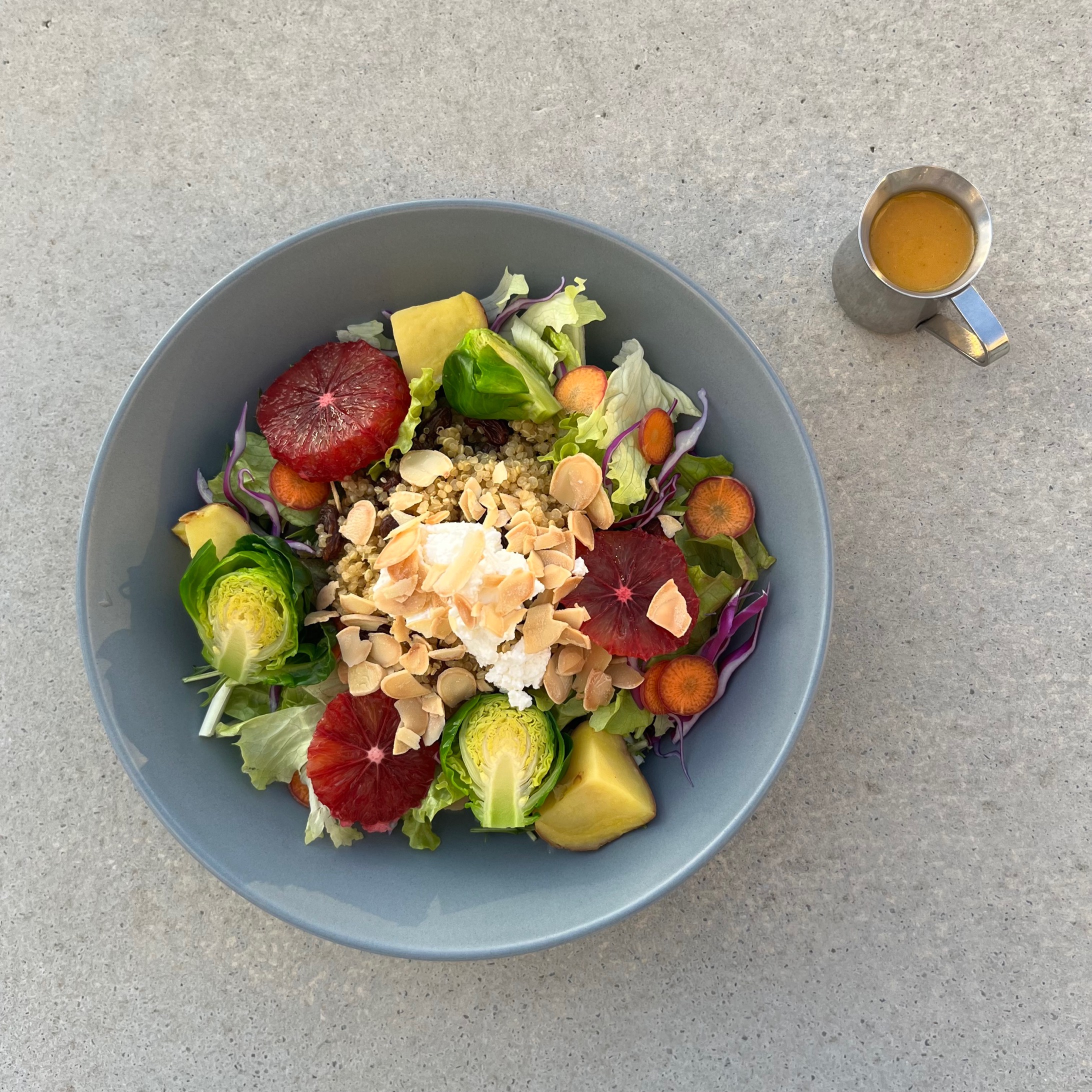 ukafe限定サラダボウルは、芽キャベツ、人参、ブラッドオレンジ、きたあかりのジャガイモを使用。(※変更になる場合がございます)