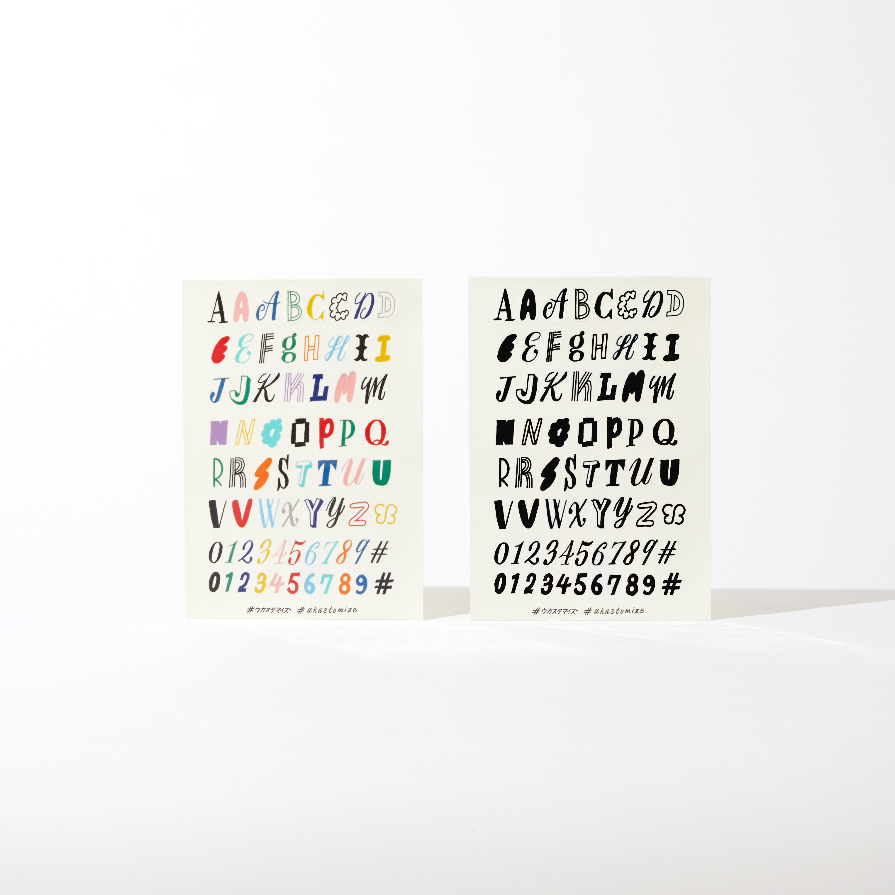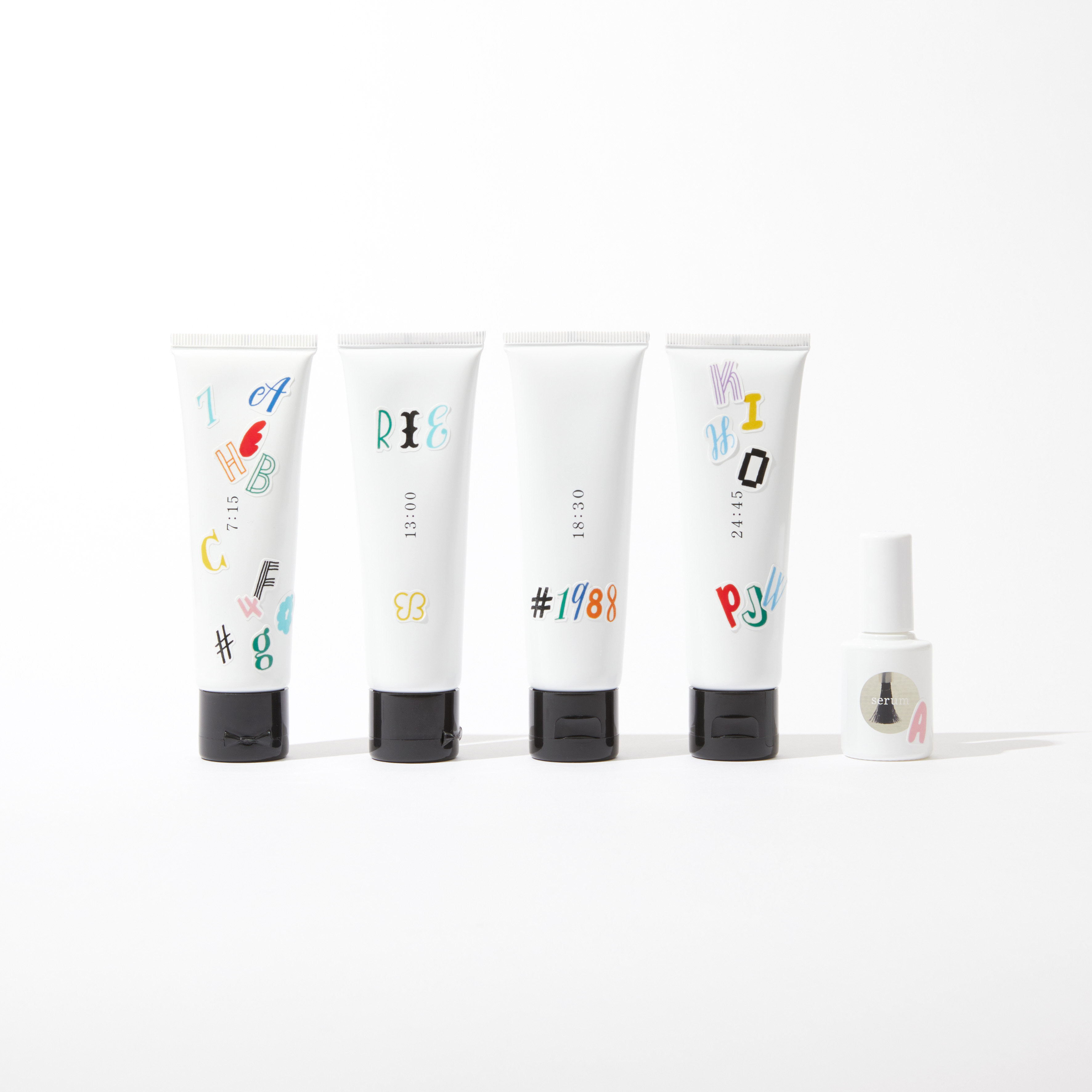 uka hand creamのどれかまたはuka better nail serumをご購入の方に、イラストレーターSHOGO SEKINE氏デザインのオリジナルアルファベットステッカーをプレゼント。1点ご購入について1枚の配布となります。