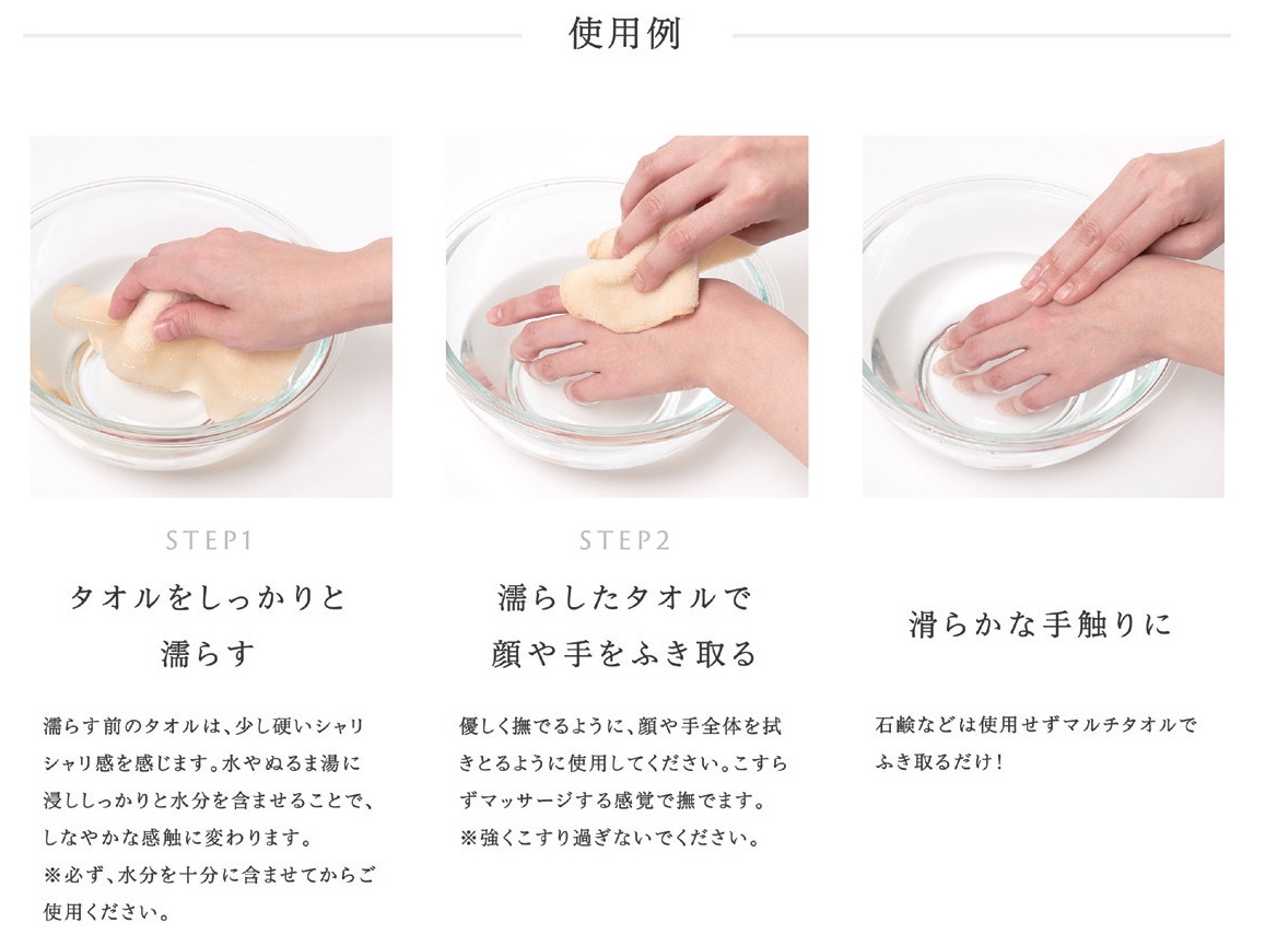 ▼HOW TO USE 毎日のスキンケアに。和紙ビロードのマルチタオル