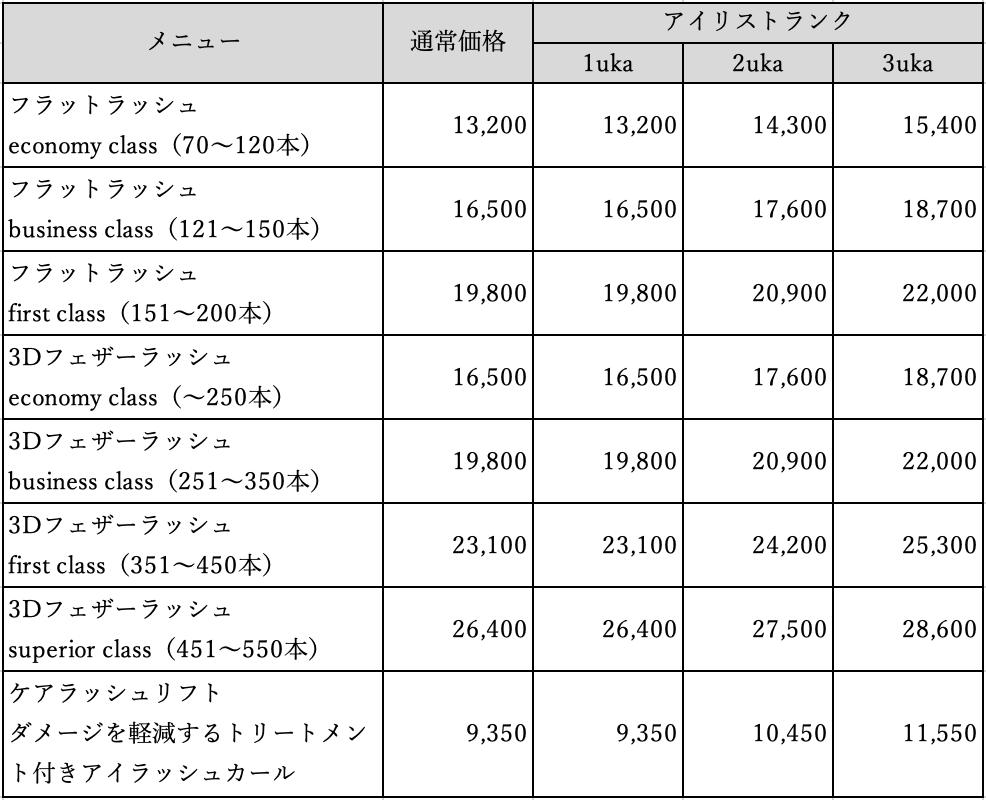 メニュー価格一覧は、下記をご確認いただきますよう