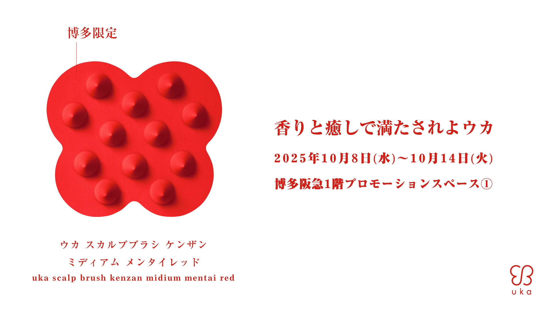 POPUPには、博多限定のスカルプブラシケンザンウカストアゲンテイメンタイレッドも並びます。