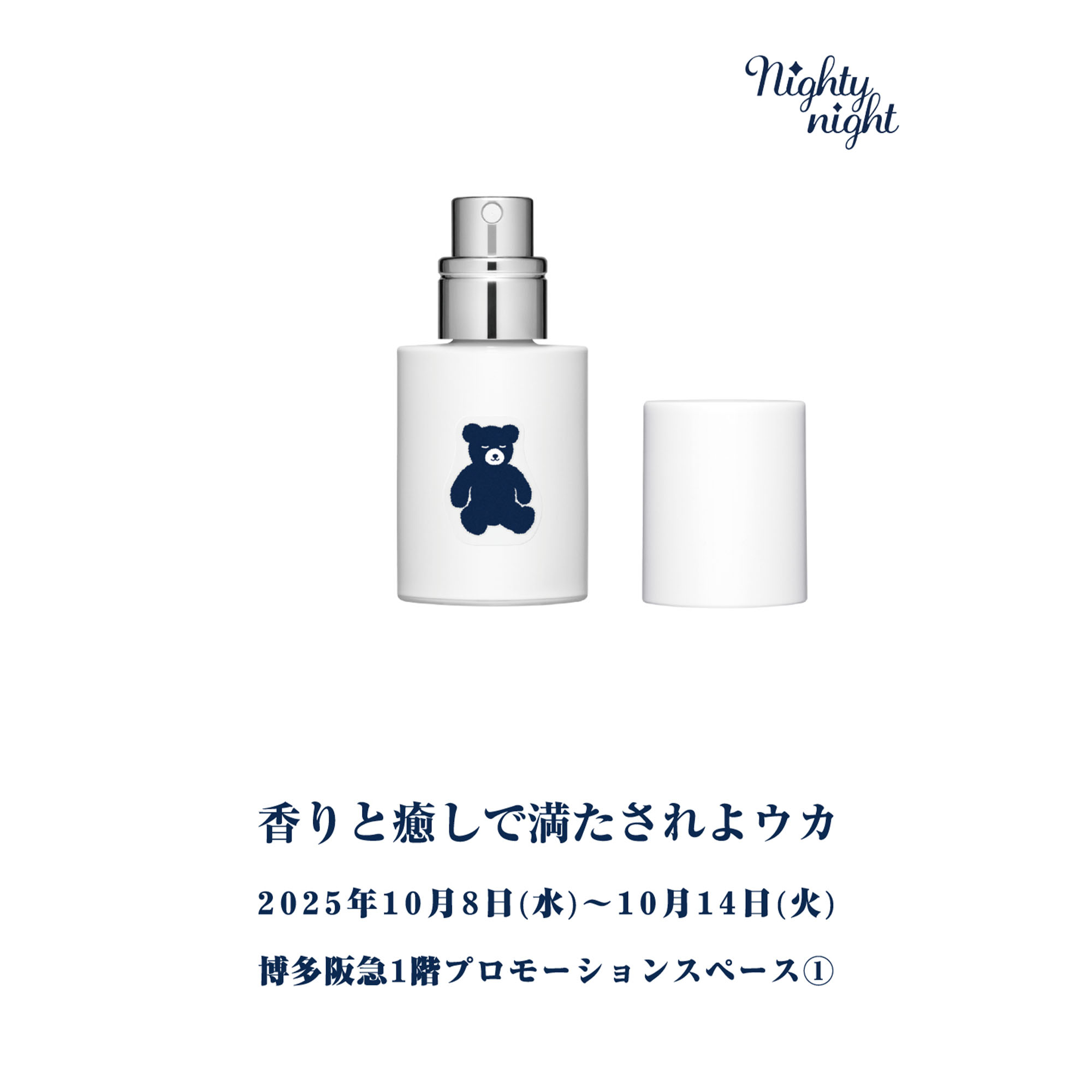 プチでフレンドリーなパフューム ukaプチューム[Petume]。10月10日に発売のuka Petiume Nighty nightが阪急博多のPOPUPで先行発売します。ローズやゼラニウム、ユーカリ、サンダルウッドが香ります。