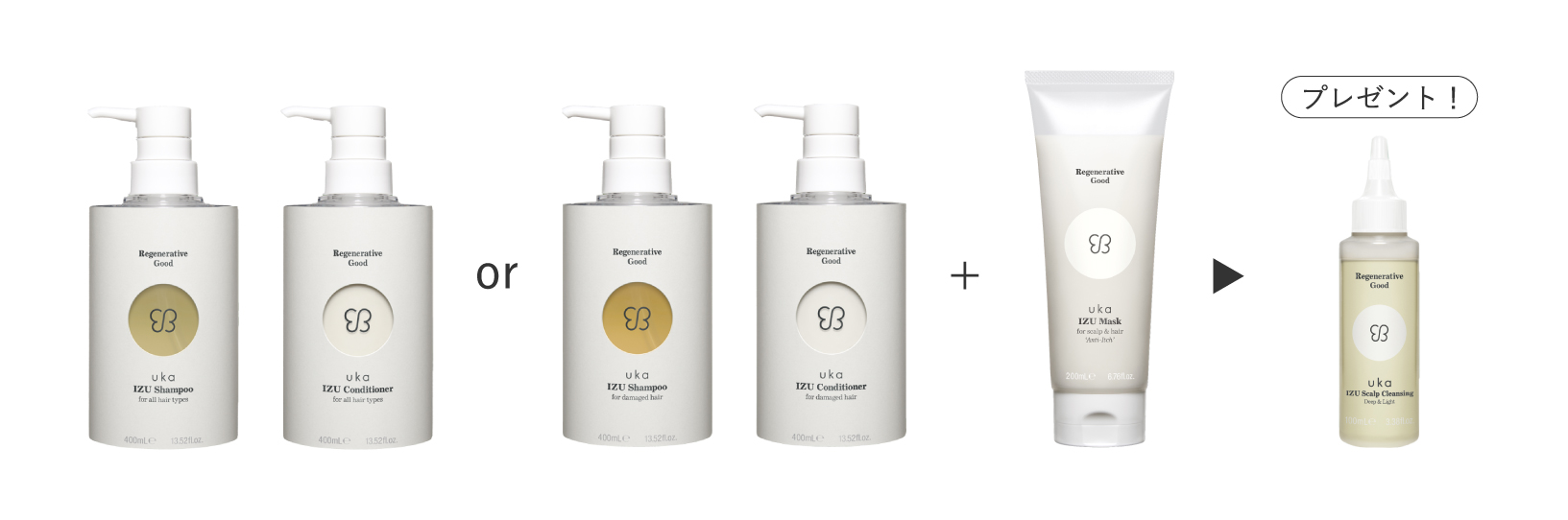 ・uka IZU Shampoo / Conditioner for all hair types 各400mL Bottle + uka IZU mask for scalp&hair ‘Anti-Itch’ 200mL Tube