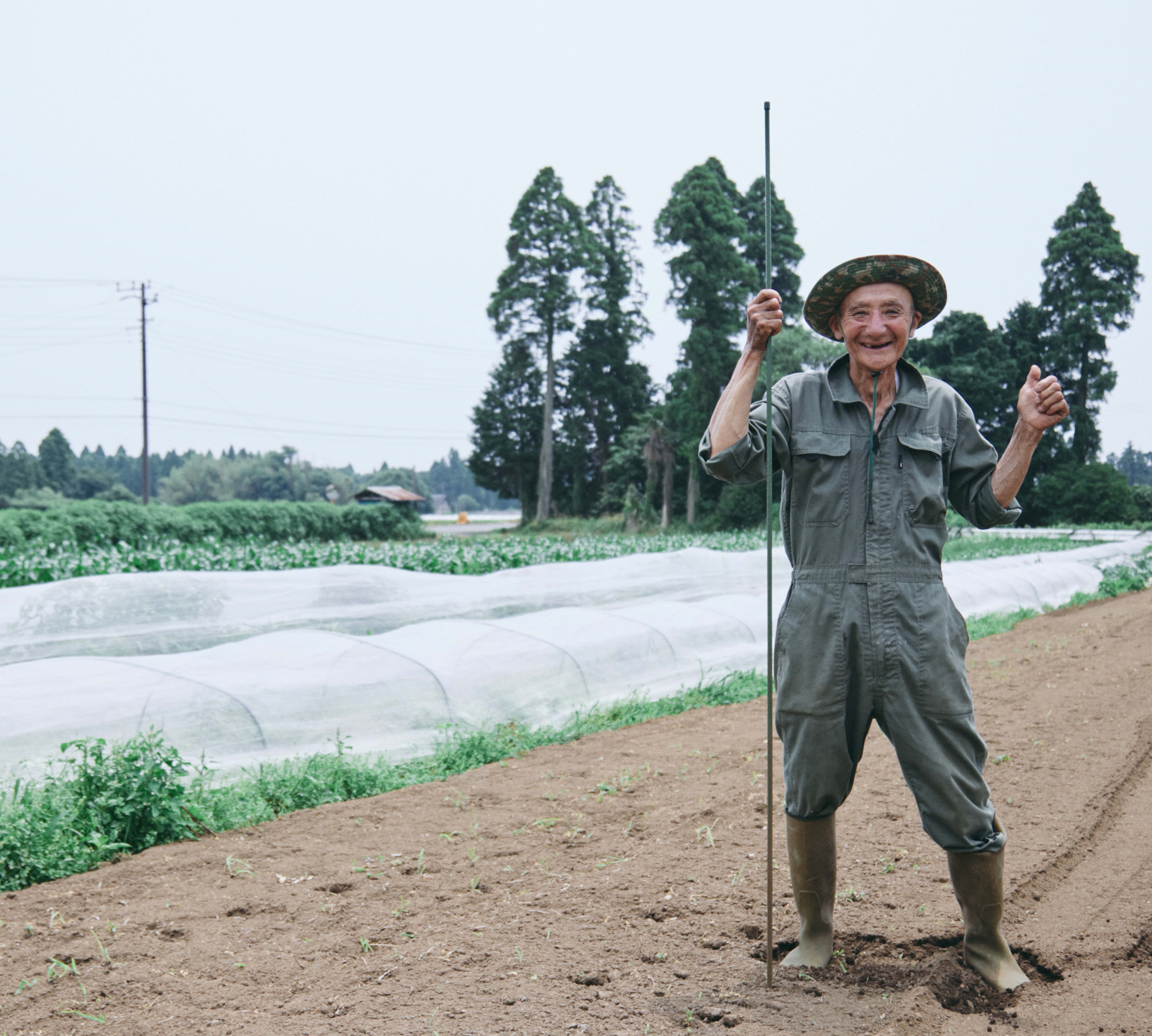 千葉県山武市で有機野菜を製造。30年以上の歳月で、化学肥料や農薬に頼らない、地元の酒蔵から出た酒粕や醤油工場から出た昆布の出し殻、コーヒーメーカーから出るコーヒー豆殻等を発酵させ堆肥を作り、それらを土壌とする「たがやす農法」を確立。農業研修、農業体験の実施のほか、農業イベントの企画、運営も自ら実施。