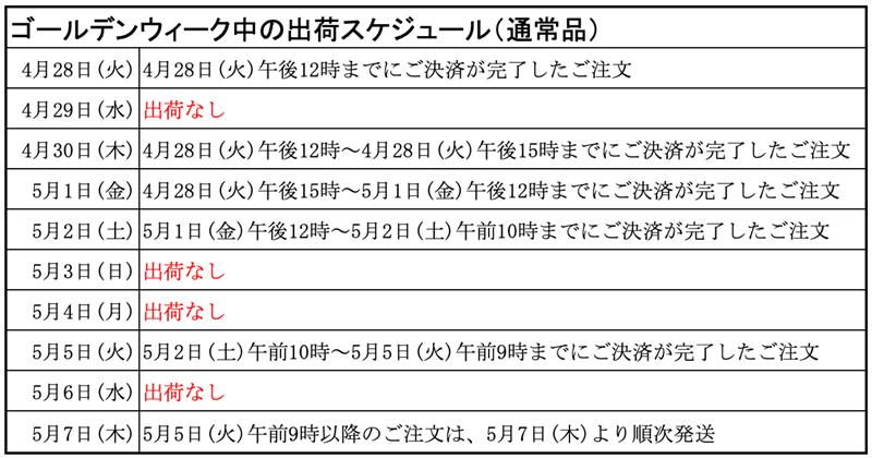 ゴールデンウィーク中の出荷スケジュールならびにお問い合わせについて