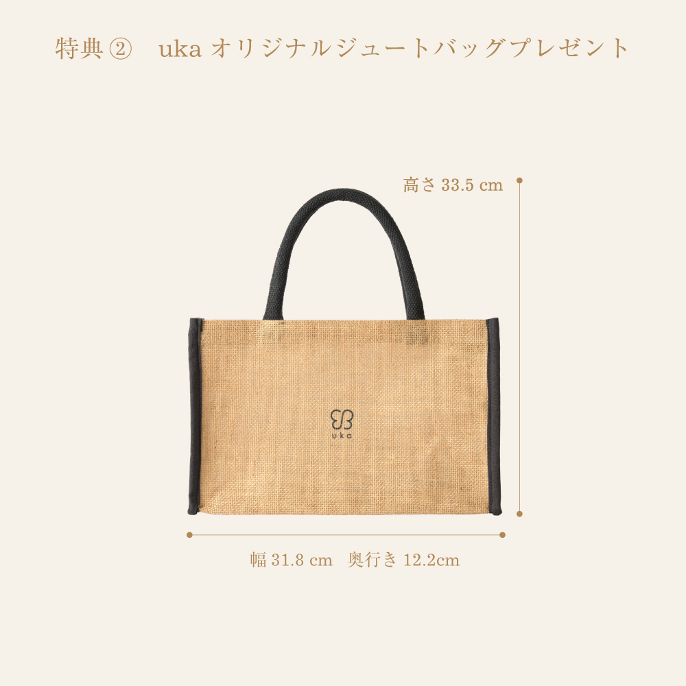 セットをご購入の方に、ukaオリジナルジュートバッグをプレゼント(ギフトボックスがぴったり入るサイズ!)