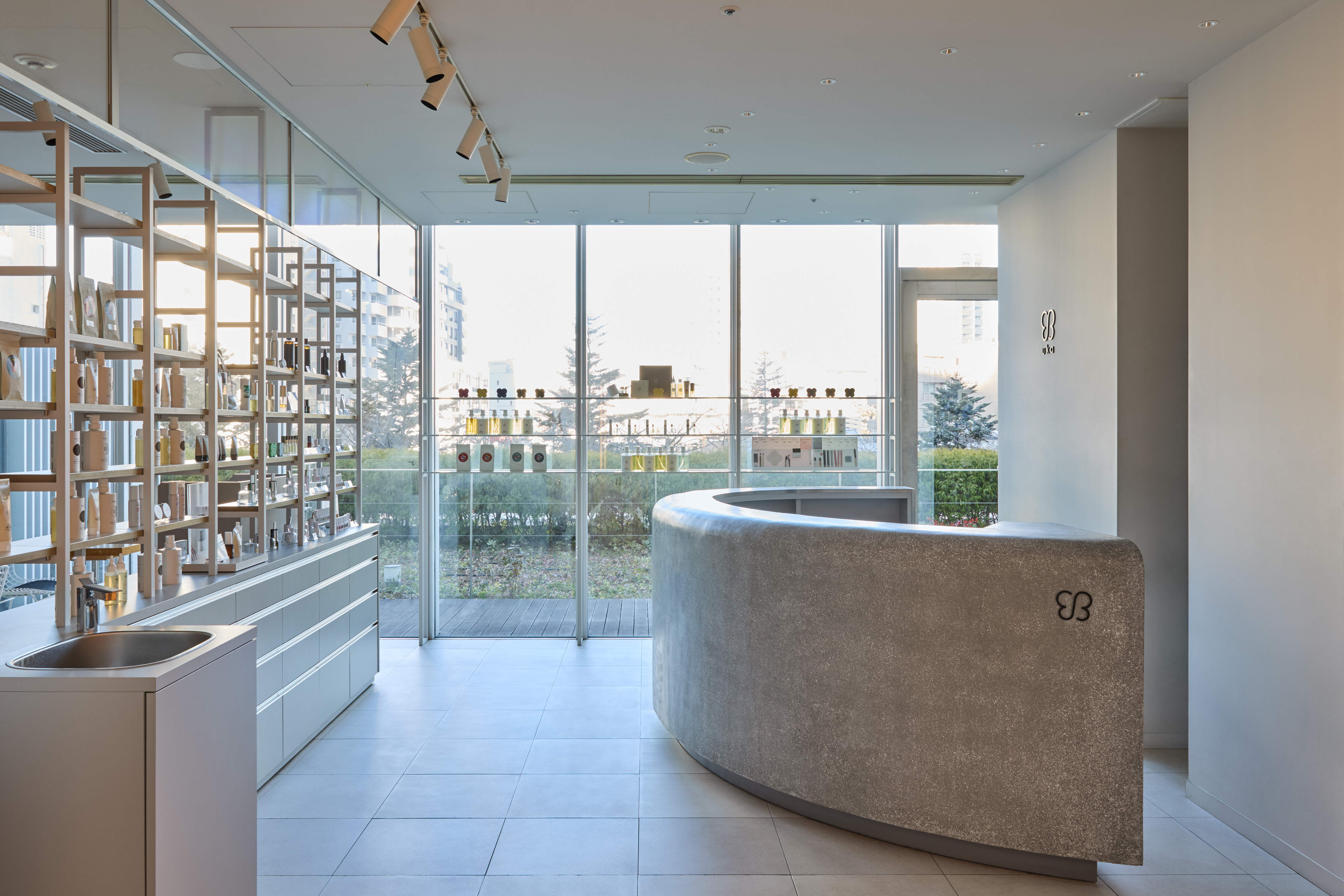店頭にはオリジナルプロダクトをフルラインナップ。常駐するトータルビューティーコーディネーターがお客さまのお悩みや状態に合わせた最適なプロダクトのご提案やホームケアのアドバイスをさせていただきます。実際に手に取って、ukaプロダクトの香り、テクスチャー、こだわりをご体感ください。