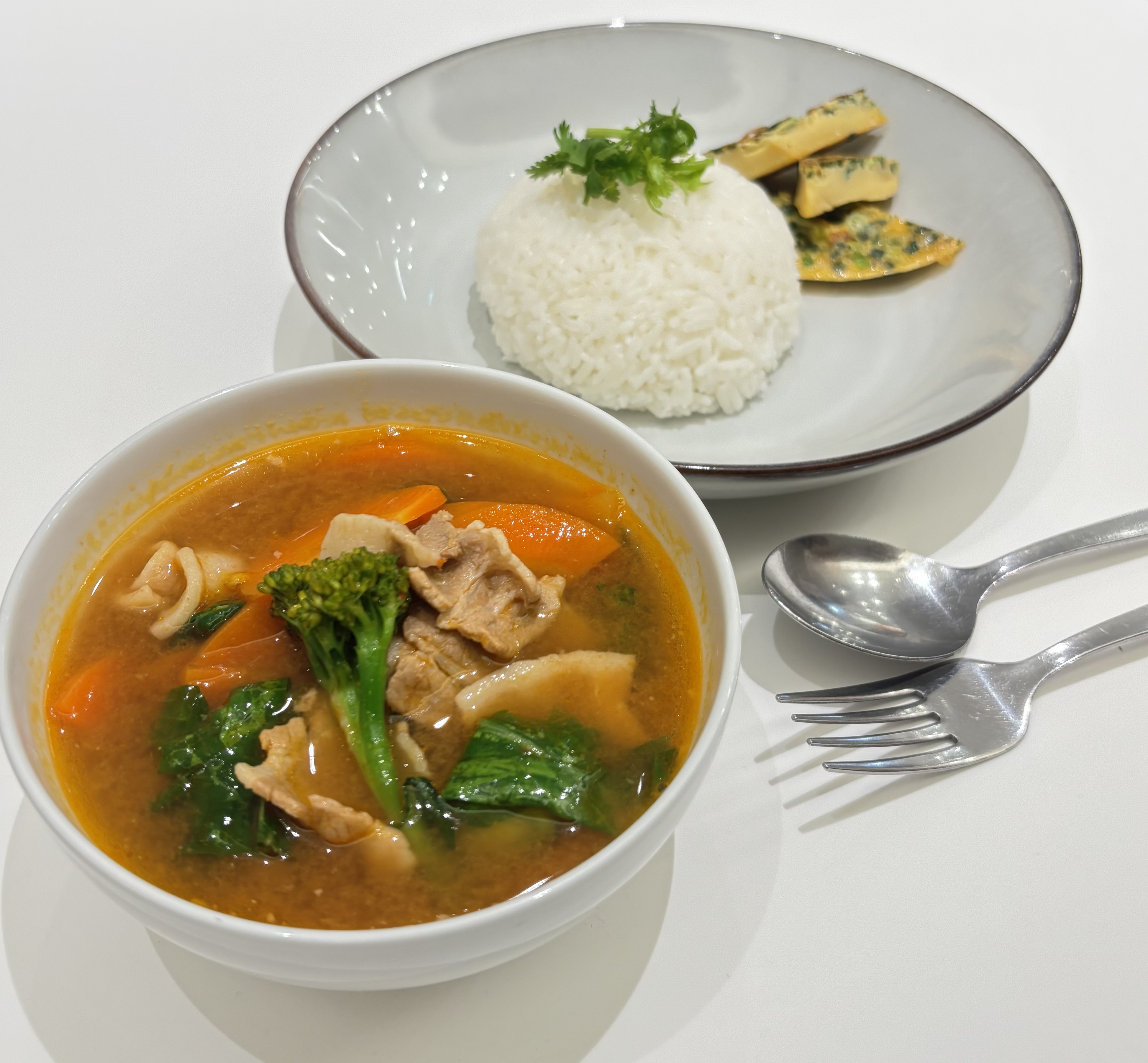 タマリンドやレッドチリを使用した酸味と辛味のさっぱりスープ。 ナンプラーや、ガピというシュリンプペーストで魚介の味わいも感じられます。 「ゲーンソム」は、タイ南部の郷土料理で、朝食としても親しまれています。 ココナッツミルクを使用しないタイ料理のため、比較的ヘルシーにお召し上がりいただけます。 ukafexリエさんの1ヶ月限定!! 東京のタイ料理専門店やタイ南部サムイ島などで修業した辺境 タイ料理人リエさんが監修。 ※アレルゲン:小麦、大豆