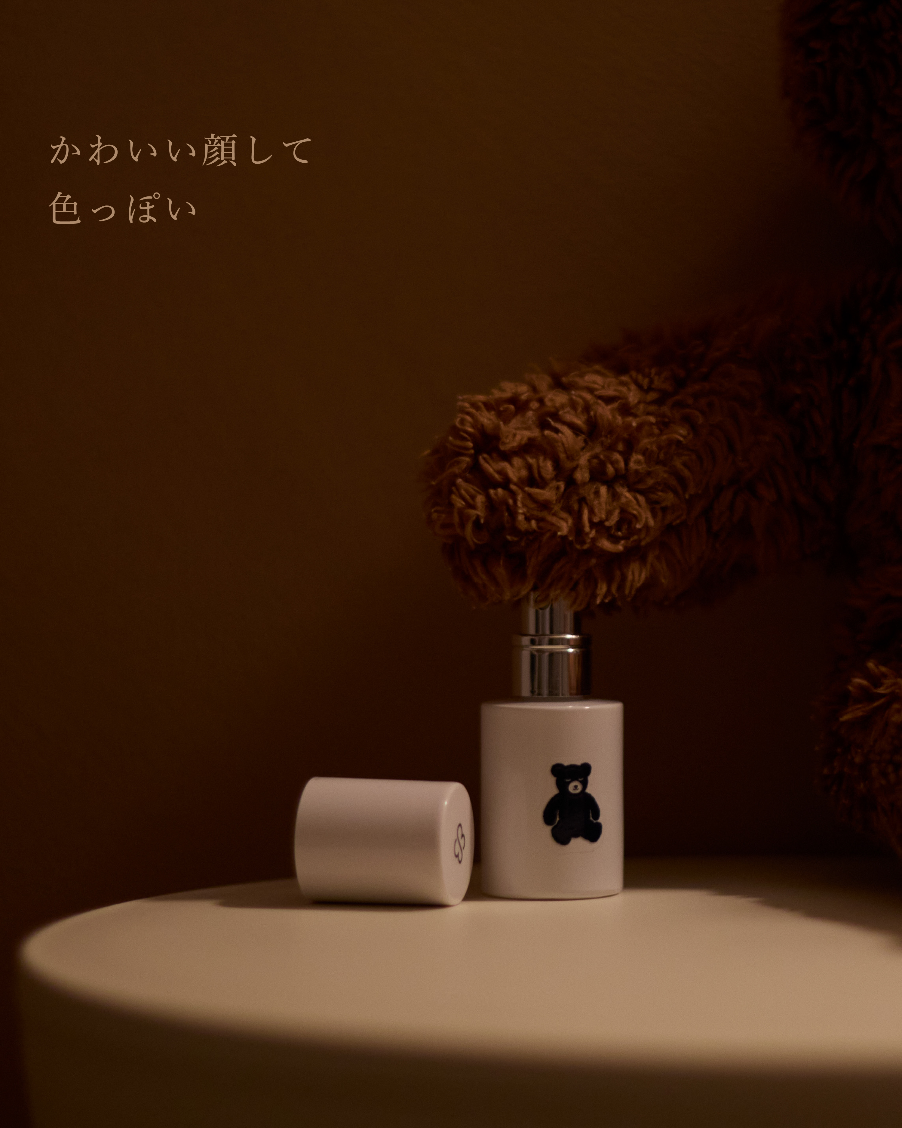 ローズとサンダルウッドが織りなすエキゾチックな香りは一度纏うとやみつきに子どもたちと一緒にすやすや眠るクマをイメージしたボトルデザインと、 スパイシーで奥行きのある華やかな香りのギャップにも、ukaらしい遊び心が詰まっています。