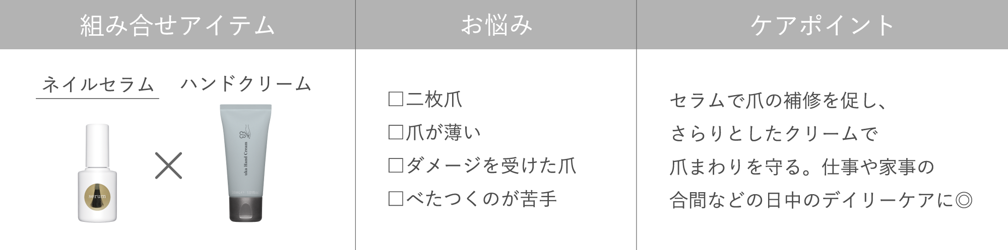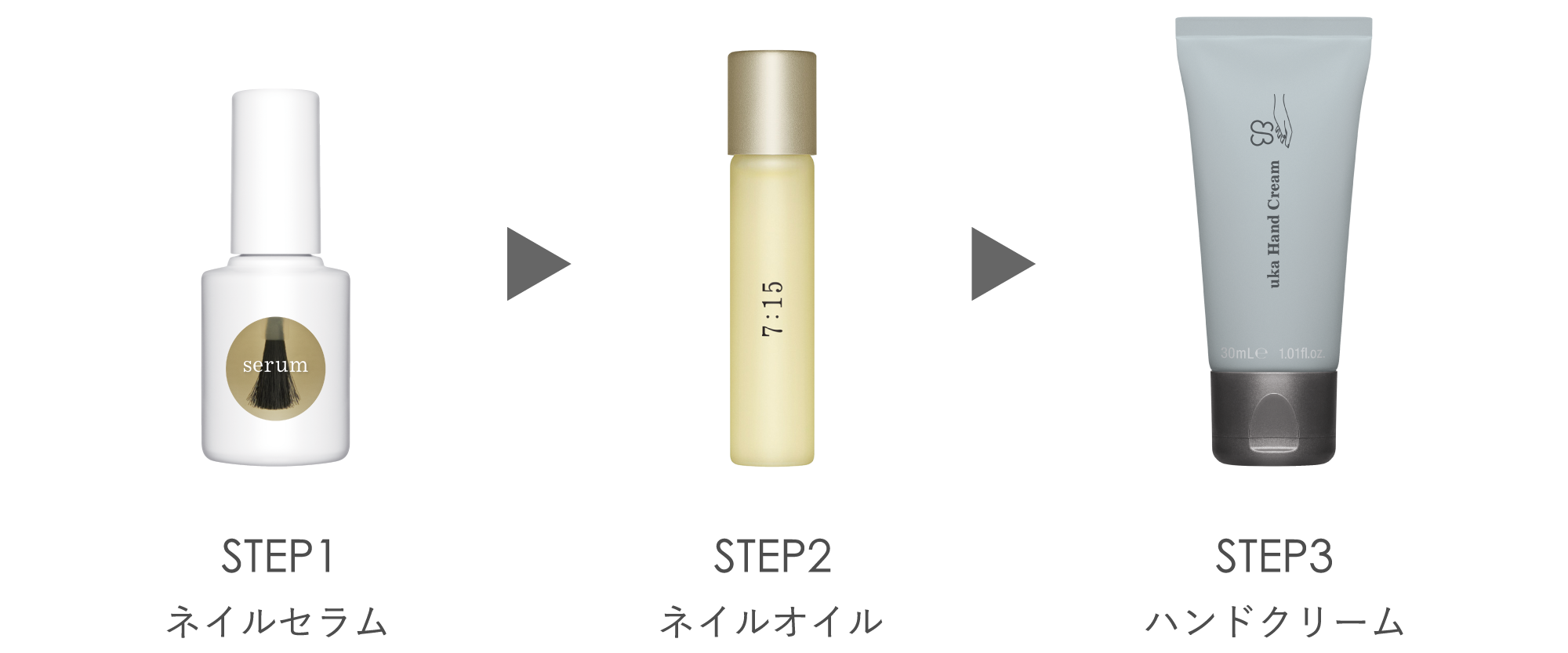 - ネイルセラムで爪のケアを。爪の縦割れや薄さにアプローチし、健やかに導きます。