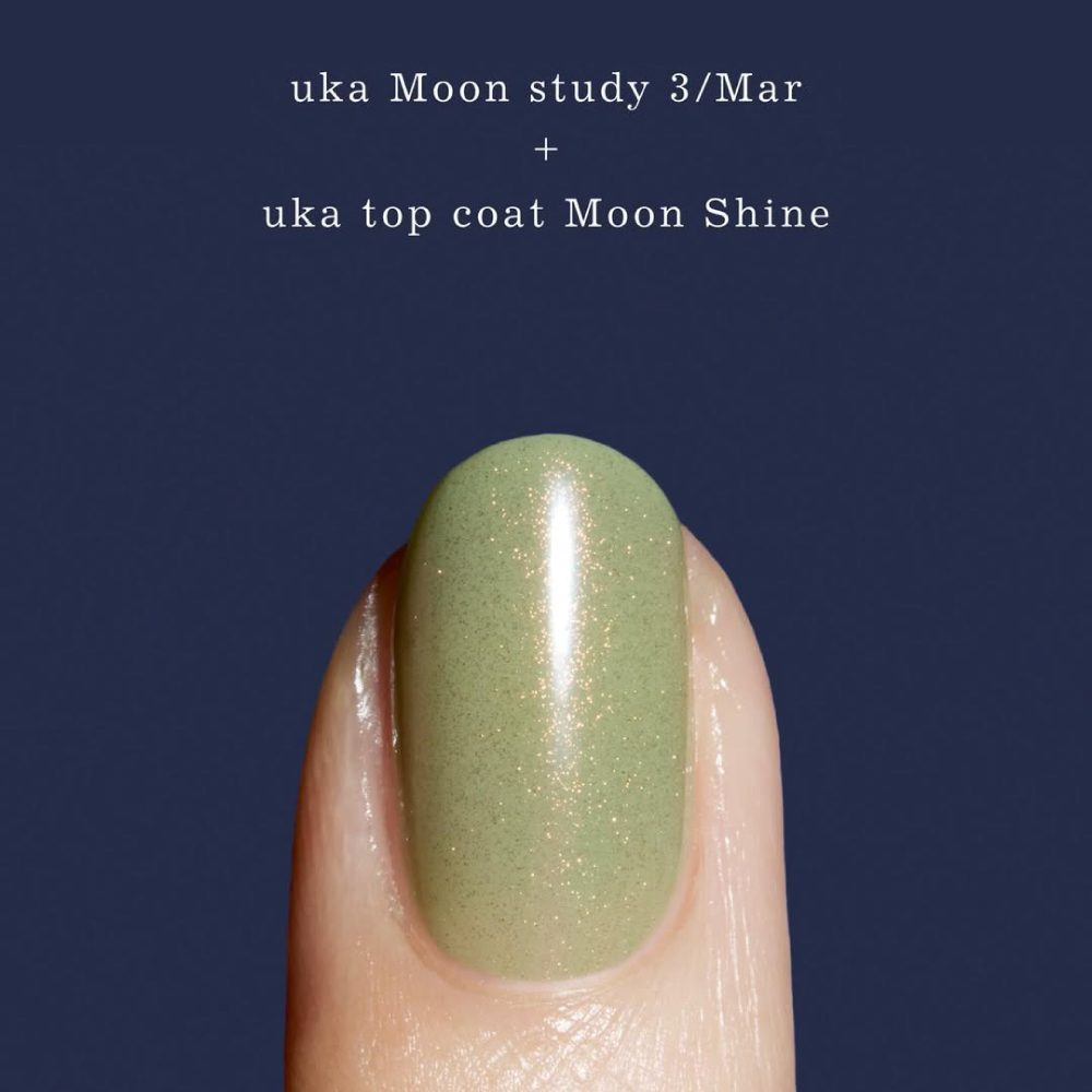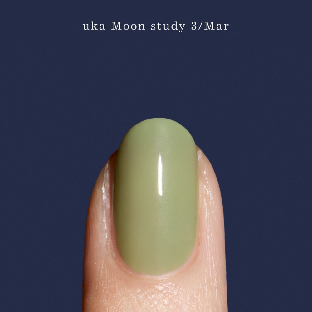 満月の光は太陽光の反射。 その輝きは決して青白一色ではなく、わずかに黄や緑を帯びています。森や草木、夜空に漂う空気までもがその光に染まり、深い緑の影を落とす事があります。影が豊かに色づくその瞬間をボトルカラーに閉じ込めました。