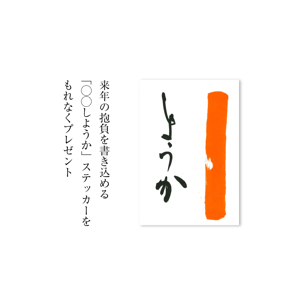 今年もしよウカ袋をお買い上げのお客さまに、しよウカのロゴステッカーをプレゼント!赤線部分に抱負や目標を書いてメモ帳や携帯に貼って、2026年の抱負をいつでも思い出せます。