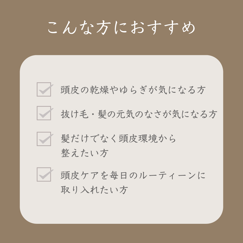 美容成分をたっぷり配合し、健やかな頭皮環境へ導きます。