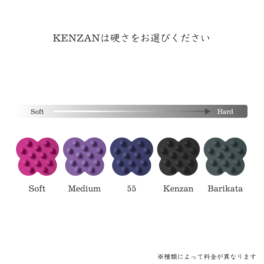 5種の硬さから気分やコンディションに合わせて選べ、手に馴染む設計と水はけの良さでお手入れも簡単。