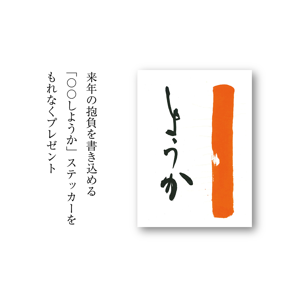 今年もしよウカ袋をお買い上げのお客さまに、しよウカのロゴステッカーをプレゼント!赤線部分に抱負や目標を書いてメモ帳や携帯に貼って、2025年の抱負をいつでも思い出せます。