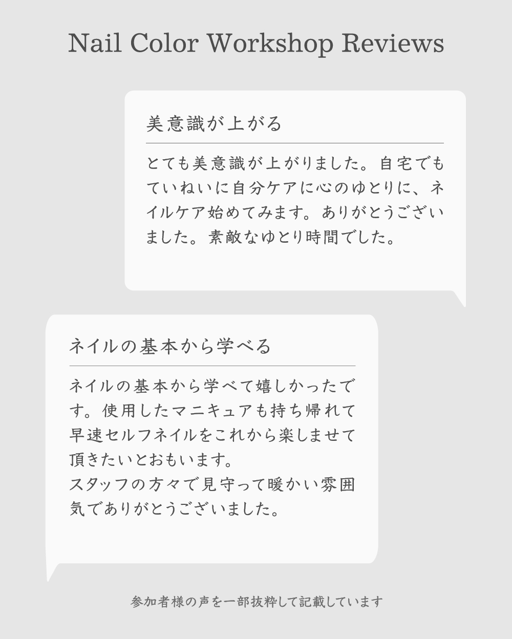 ※ジェルやその他エクステンションはオフしていただき、自爪でお越しください。
