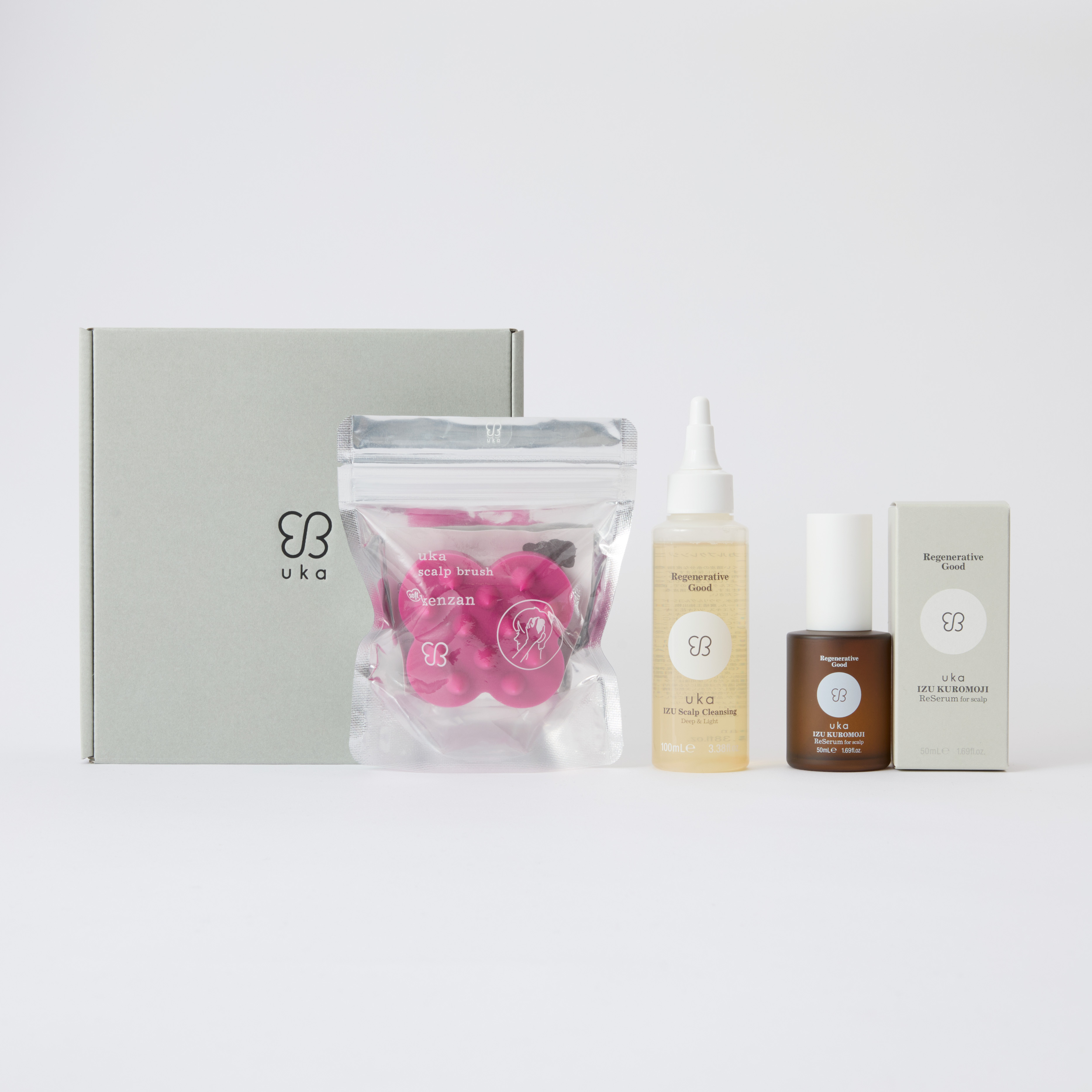 【uka IZU Scalp Cleansing Deep & Light 100mL Bottle】 ミント:清涼感がありリラックスした気分へ導きます ティーツリー:すっきりした香りが気持ちをリフレッシュさせ、集中力をサポート 【uka IZU KUROMOJI Re Serum for scalp 50mL】 無香料